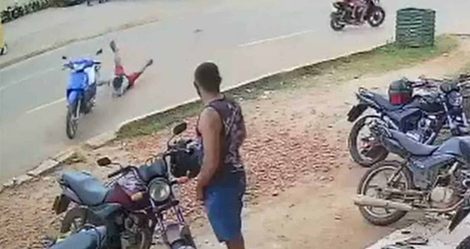 Apesar do susto, tanto o Motociclista quanto os funcionários da Oficina passam bem, mas o vídeo capturado pelas câmeras de segurança do local circulam pelas redes sociais provocando risos e “memes” da população.