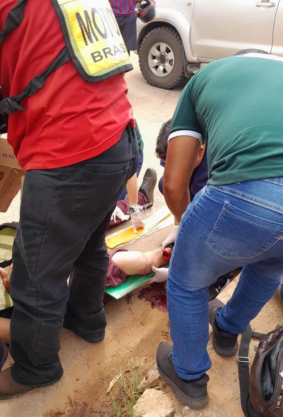 No momento do descontrole, um mototáxi passava pelo local. O condutor, identificado como Assis Leite, ex-vereador de Epitaciolândia, transportava uma passageira na garupa. Com o impacto, o mototaxista sofreu um corte na perna direita, enquanto a passageira teve escoriações.