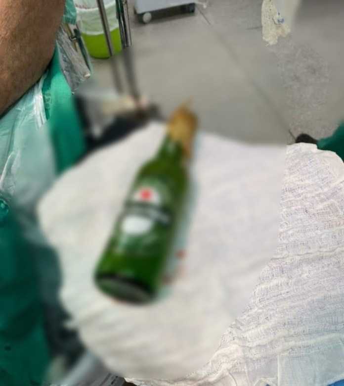 A garrafa de cerveja introduzida no anus de um homem, após uma bebedeira, em Brasileia, no último final de semana, foi extraída na manhã desta segunda-feira (10) sem a necessidade de cirurgia.