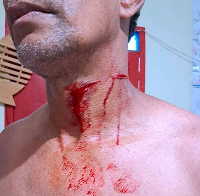 Um homem escapou por pouco de uma tragédia no final do dia desta quarta-feira (16), após ter o pescoço cortado por uma linha com cerol no bairro Aeroporto, em Epitaciolândia. A imagem do ferimento, que circulou rapidamente em grupos de redes sociais.