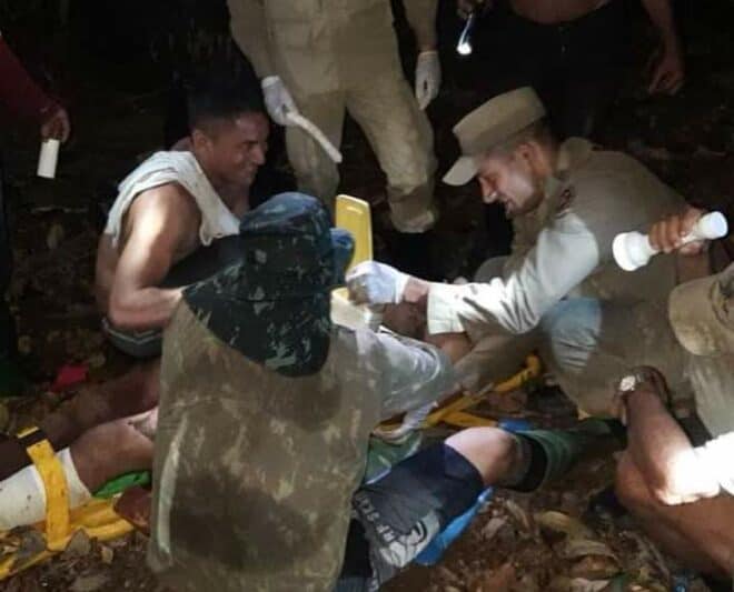 “Após seis horas de missão, entre deslocamento em ramal e caminhada na mata, a vítima foi entregue a equipe médica às 23h30 com vida”, disse a assessoria dos bombeiros.