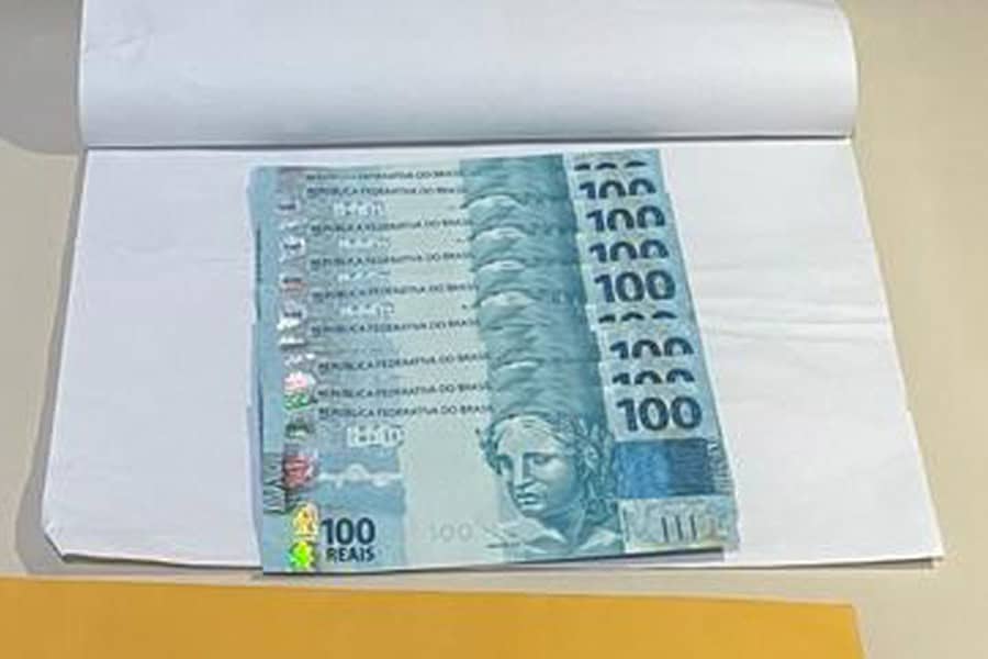 Câmeras de segurança registraram momento em que suspeito exibe “bolo” de cédulas e repassa falsificação; Polícia Civil investiga caso ocorrido na sexta-feira (22)