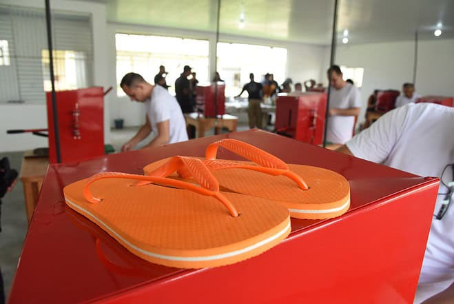 Placas de borracha, tintas sublimáticas, tiras e nove máquinas quadradas vermelhas são alguns dos materiais utilizados na produção de chinelos na fábrica, dentro da Unidade Prisional de Senador Guiomard, inaugurada nesta segunda-feira, 11, pelo Tribunal de Justiça do Acre (TJAC) e Instituto de Administração Penitenciária do Acre (Iapen). Contudo, mais que calçados com esses insumos, se espera produzir esperança nos reeducandos, contribuindo com a ressocialização, a fábrica conta com 9 máquinas e tem 11 detentos como trabalhadores, capacitados para atuar no novo projeto.