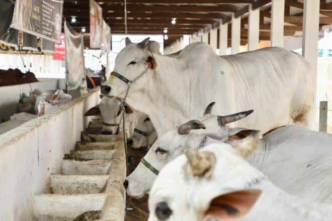 As condições sanitárias dos cerca de 200 animais (bovinos, equinos e ovinos) alojados nas baias do Parque de Exposições Wildy Viana, durante esse período de realização da Expoacre 2022, são diariamente vistoriadas pelas equipes do Instituto de Defesa Agropecuária e Florestal (Idaf), para garantir que a exposição das espécies ocorra dentro da legalidade.