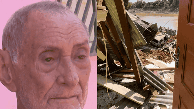Em uma das casas estava Raimundo dos Santos, de 92 anos, que teve toda a casa levada pelo desbarrancamento. Na hora, o idoso estava com a esposa, de 87 anos, Jesuína dos Santos.