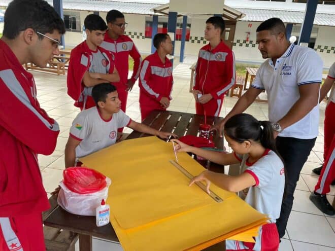 Alunos da Escola Cívico Militar Adalci Simões durante o início das aulas do Curso Técnico em Recursos Humanos, ministrado pelo Cept Campos Pereira, da Rede Ieptec, em Senador Guiomard. Foto: Assessoria Ieptec