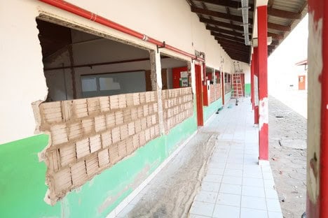 As obras tiveram início em agosto de 2025 e devem ser concluídas até maio de 2026. Parte dos serviços já foi executada, incluindo substituição de telhas, pintura de alguns ambientes, intervenções elétricas e início da demolição do muro antigo. Também foi iniciada a remoção das esquadrias das salas de aula para substituição.
