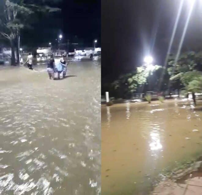 A Avenida Getúlio Vargas, uma das principais da cidade, começou a ser invadida pelas águas na noite de quinta-feira, 23.