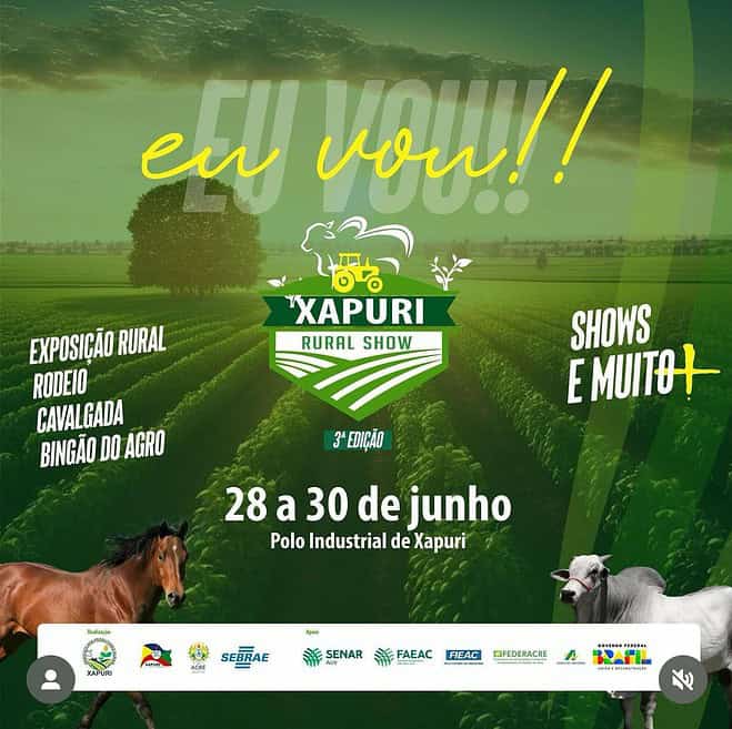 Em sua 3ª edição, o Xapuri Rural Show acontecerá no Polo industrial do município, de 28 a 30 de junho, com a proposta de gerar um ambiente favorável a interação entre expositores e o desenvolvimento da cultura local. A feira é uma realização do Governo do Acre, a Prefeitura de Xapuri e o Sindicato dos Produtores Rurais do município, com o apoio do Sebrae no Acre, FIEAC e demais parceiros.
