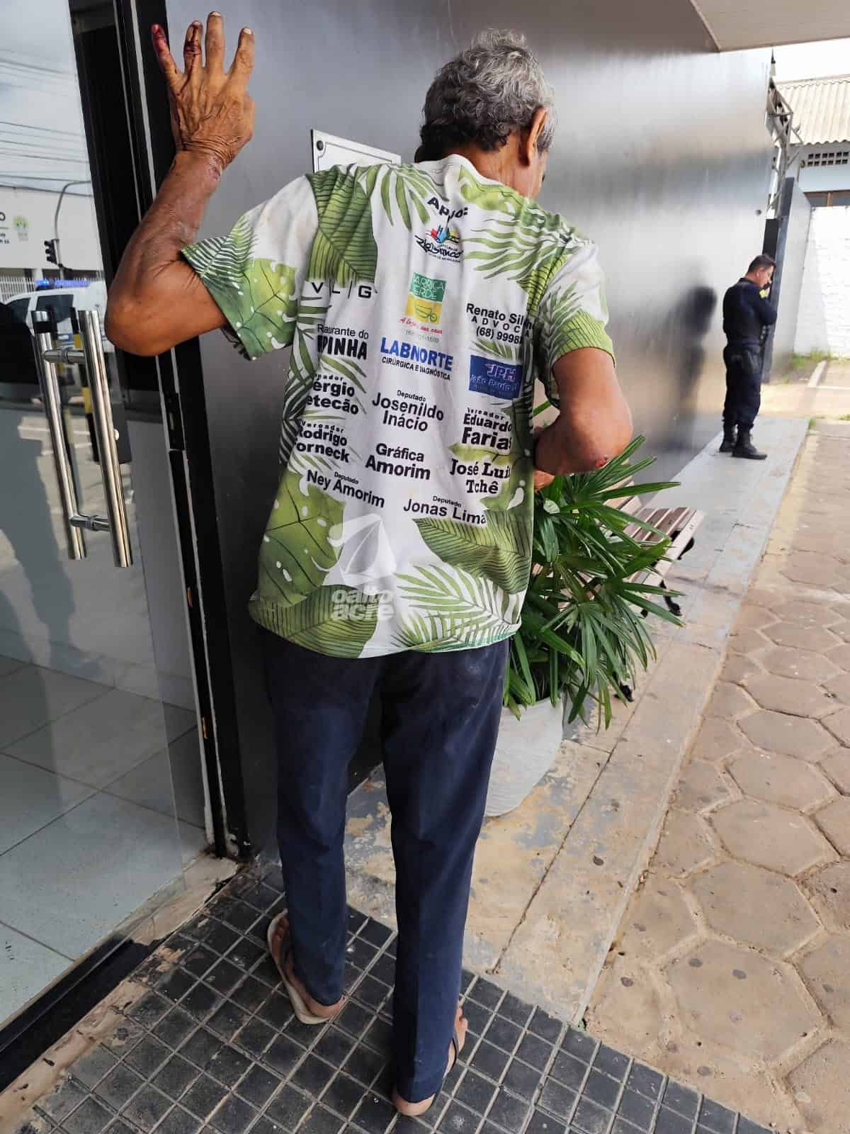 O idoso Ricardo Araújo da Silva, de 65 anos, foi agredido, ferido com um golpe de faca e roubado na tarde deste domingo (8), durante um assalto ocorrido na Rua Arlindo Porto Leal, nas proximidades da Assembleia Legislativa do Acre, no bairro Centro, em Rio Branco. O autor do crime, Claudemir Vieira Cunha, de 42 anos, detento monitorado por tornozeleira eletrônica, foi preso em flagrante.