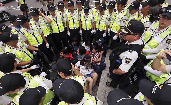 Imagem mostra como é tratado os protestos na Corea do Sul