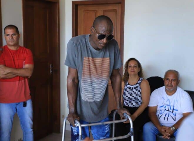 “Passei por uma situação muito complicada e difícil, preciso da minha família para me ajudar. Estou muito feliz e ansioso para encontrar minha família, tenho três filhos. Todos aqui me ajudaram muito”, disse.