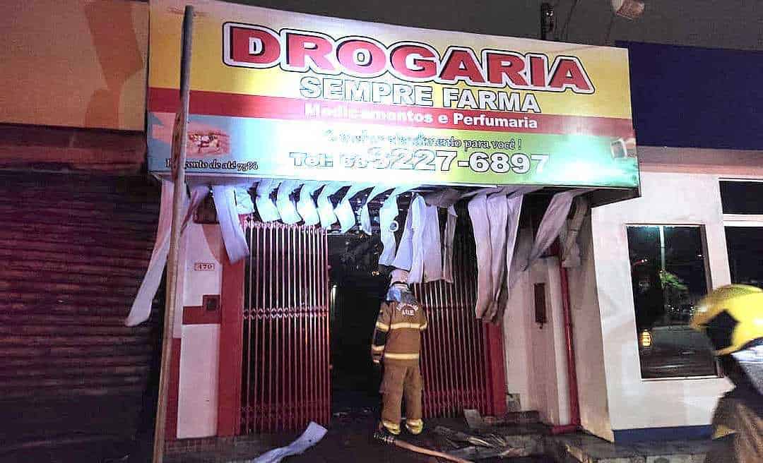 Fogo consumiu uma lanchonete e uma farmácia e atingiu outros pontos comerciais da área.
