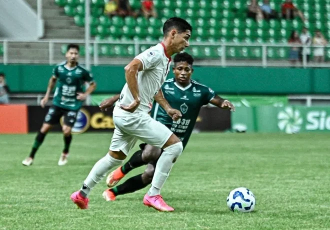 Aos 26, o Manaus cobrou uma falta rápida. Caio cruzou e Lelo, livre dentro da área, tocou para empatar.