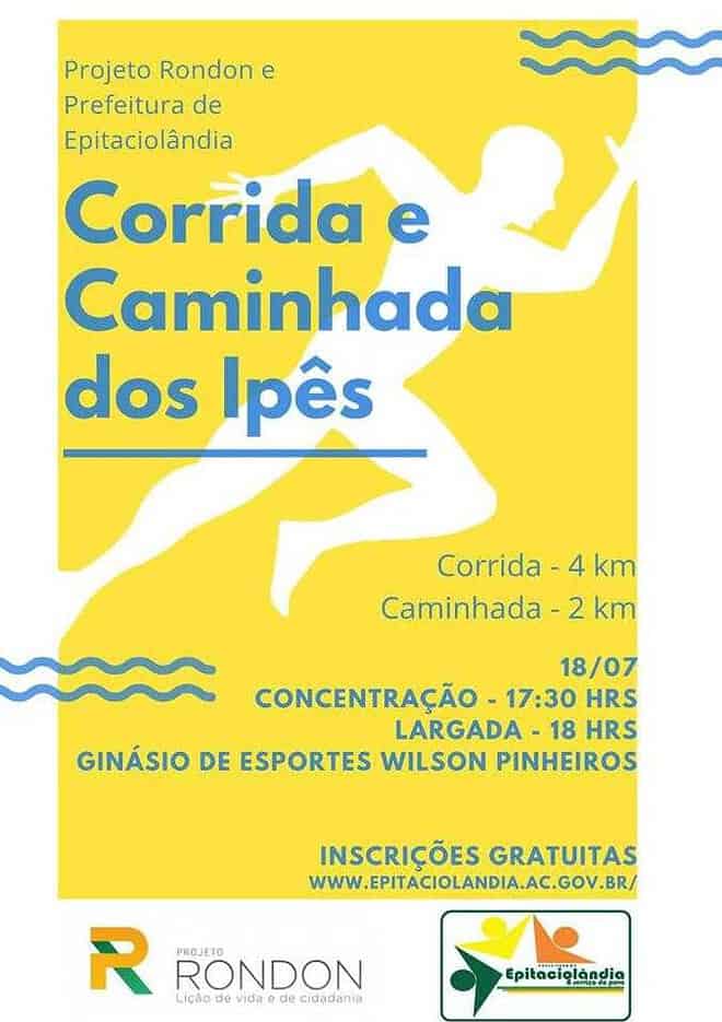 Olá população de Epitaciolândia e região. No dia 18/07 será realizada a Corrida e Caminhada dos Ipês.