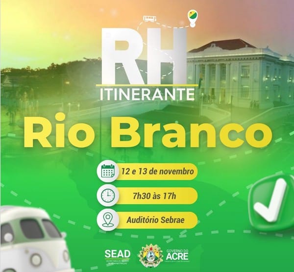 O governo do Acre, por meio da Secretaria de Estado de Administração (Sead), segue com as inscrições abertas para a edição 2025 do RH Itinerante – Gestão de Pessoas, que será realizada na quarta-feira, 12, e quinta, 13, no auditório do Sebrae, em Rio Branco, das 7h30 às 17h.