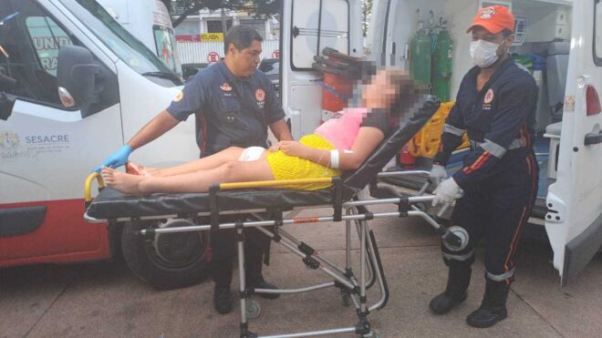 A menina foi socorrida por uma equipe médica do SAMU e, encaminhada ao Pronto Socorro de Rio Branco.