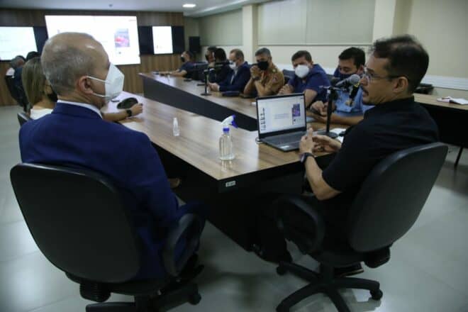 A convite da Secretaria de Estado de Justiça e Segurança Pública (Sejusp), representantes das forças policiais que atuam no Acre, bem como de instituições ligadas à área, reuniram-se, na manhã desta sexta-feira, 25, para analisar os resultados que apontam a expressiva redução (38%) do índice de Mortes Violentas Intencionais (MVI), em território acreano, no ano de 2021.