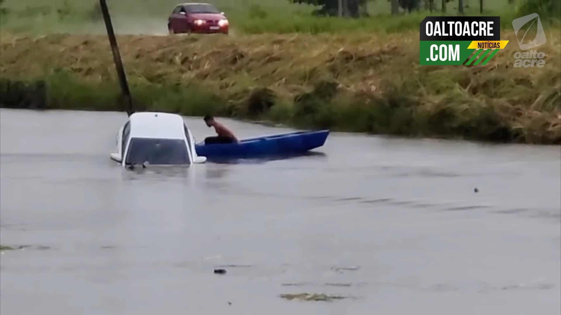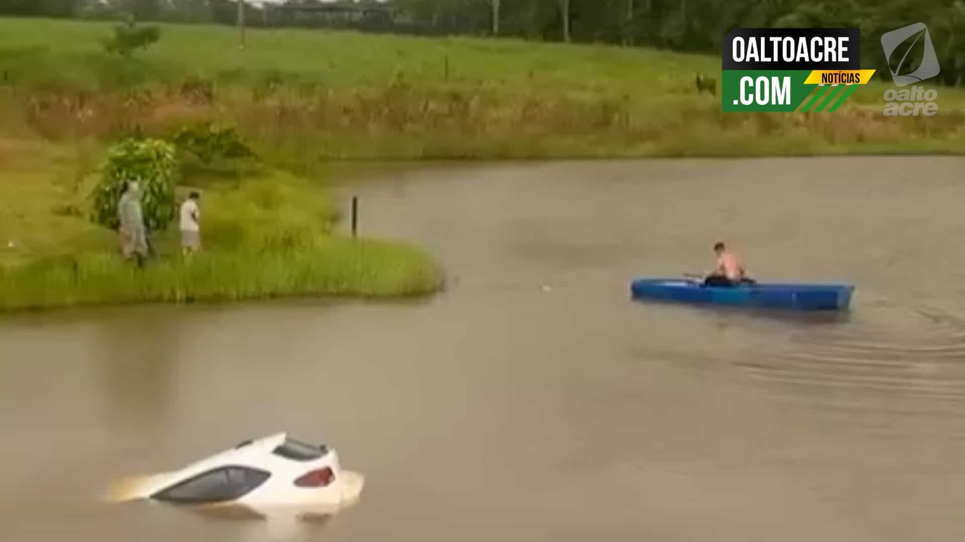 A cena foi registrada em vídeo por um internauta que passava pelo local no momento em que o automóvel afundava. As imagens mostram o carro parcialmente submerso, enquanto moradores observavam a situação às margens da rodovia.