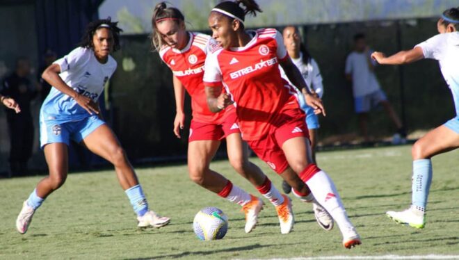 O Internacional empatou neste sábado (27.04), com o Real Brasília em 1 a 1, no Estádio Defelê, em Brasília, e seguem na 14ª posição do Brasileirão feminino A1. Estreando pelas Gurias Coloradas, Chú Santos marcou o gol do Inter na partida e Keke abriu o placar ainda na primeira etapa para as brasilienses.