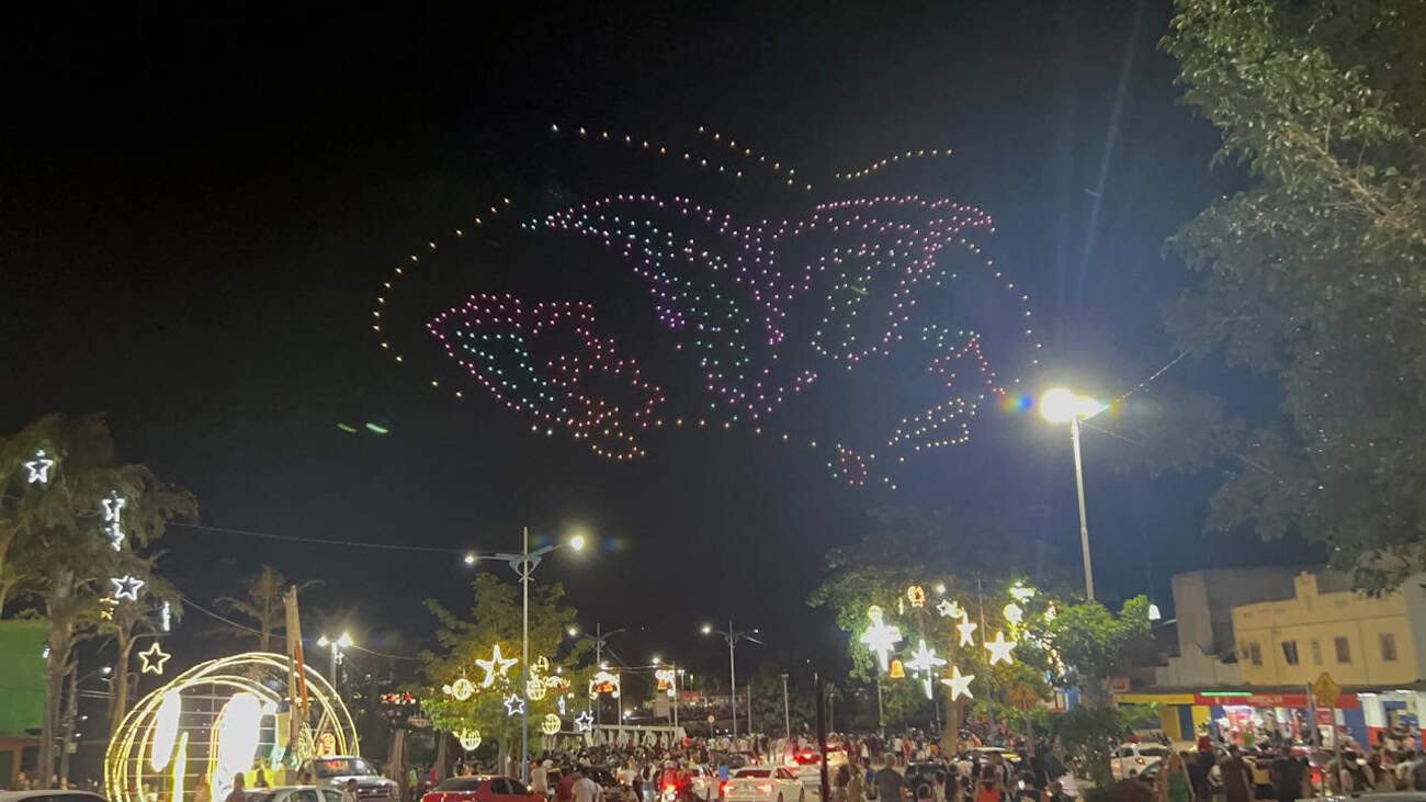 O céu de Rio Branco foi transformado em um grande palco de tecnologia e emoção na noite deste sábado (20), por volta das 20h30, com a realização do primeiro show de drones da história do Acre. O espetáculo integrou a programação do “Natal de Vida, Esperança e Dignidade”, promovido pela Prefeitura de Rio Branco, na região da Gameleira.