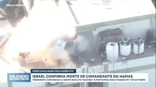 O Exército de Israel divulgou nesta quinta-feira (20) imagens do momento em que matou Ahmed Hassan, comandante da divisão de elite do grupo terrorista Hamas, em Neit Hanoun, no norte da Faixa de Gaza. No vídeo, o sniper está andando no topo de um prédio quando é alvejado por um explosivo disparado por uma aeronave. Segundo a FDI (Forças de Defesa de Israel), o ataque foi preciso e direcionado, e nenhum civil ficou ferido.
