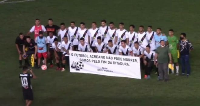 Um fato curioso e poucas vezes visto chamou a atenção na partida de ontem entre Vasco x Humaitá, pela 9• rodada do campeonato estadual. A equipe cruzmaltina entrou em campo com uma faixa onde estava escrito: “ O futebol acreano não pode morrer. Somos pelo fim da didática”.