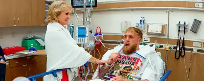 Jake Paul foi dirigindo seu carro para o hospital depois do combate. O lutador de 28 anos passou por procedimento cirúrgico no rosto. Pelas redes sociais, o influenciador mandou um recado para os fãs.