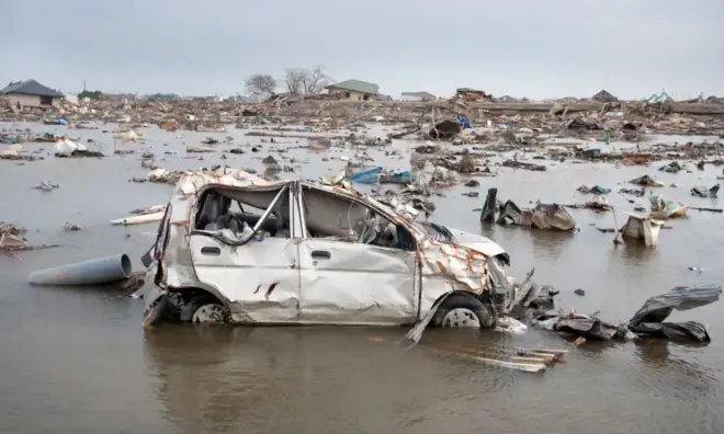 Danos causados após tsunami, terremoto e acidente nuclear em Sendai, no Japão, em 2011. • Foto: Mark Edward Harris/Getty Images