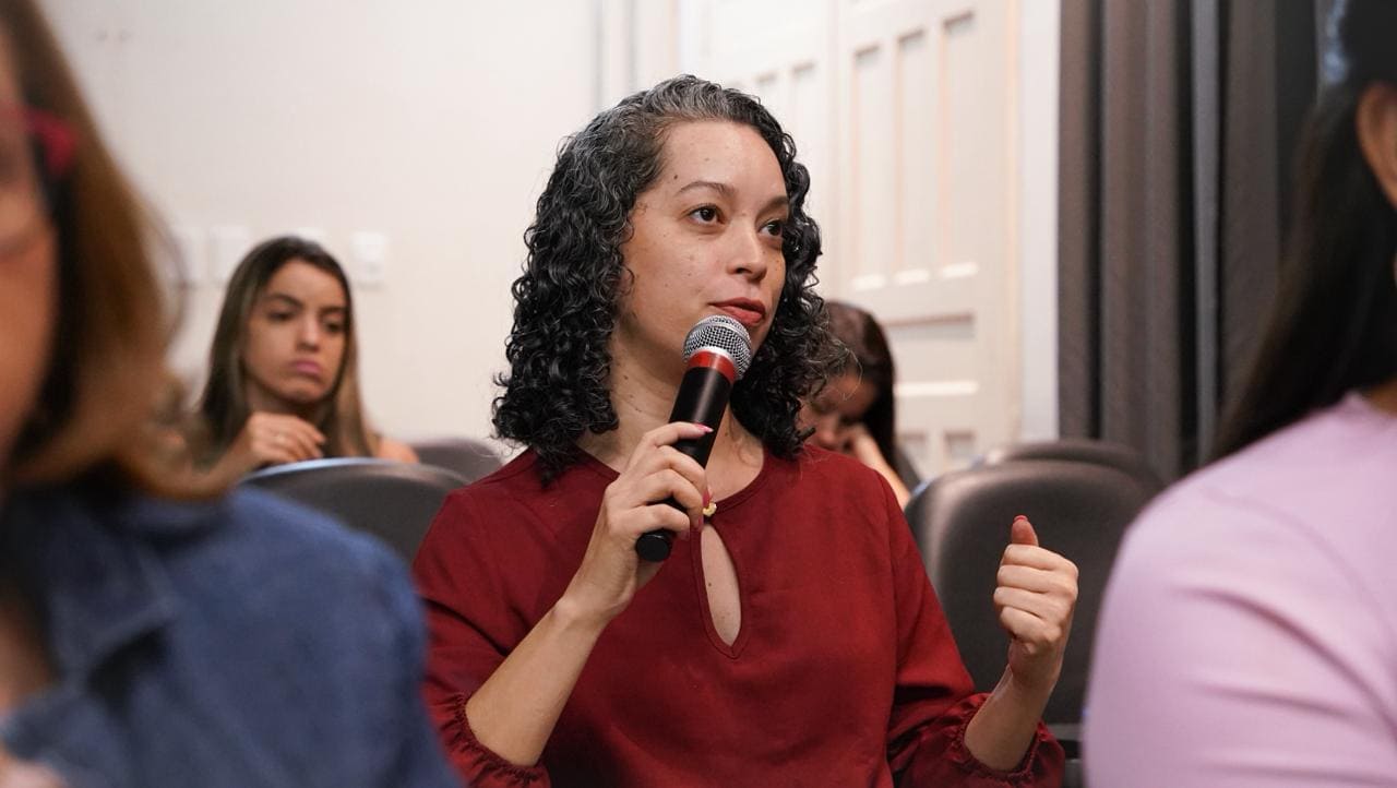 Em seguida, a consultora da Organização das Nações Unidas para a Educação, a Ciência e a Cultura (Unesco), Larisse Cruz, conduziu uma apresentação sobre a incorporação do gênero como eixo estratégico na política ambiental, destacando a importância de integrar essa perspectiva no planejamento, na execução e no monitoramento das ações.