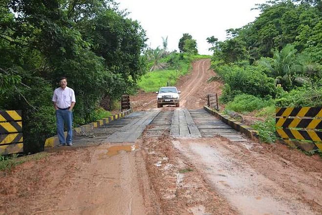 Outra obra concluída foi uma ponte estaqueada em madeira medindo 20 x 5 metros sobre o Igarapé Barra no Ramal do Santana e deve atender centenas de famílias, a Ponte em questão era uma reivindicação antiga dos produtores rurais que vinham enfrentando dificuldades para escoar sua produção.