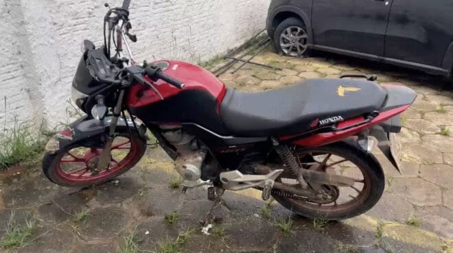 De acordo com as informações da PM, a motocicleta Honda Titan Start 160, de cor vermelha e placa QWP-3G53, havia sido roubada na quarta-feira (12) por um criminoso armado, que abordou a vítima no bairro Canaã e fugiu com o veículo. Durante o patrulhamento, os policiais localizaram a moto parada em um semáforo, com Jairo e o adolescente prestes a entrar no bairro Manoel Julião.