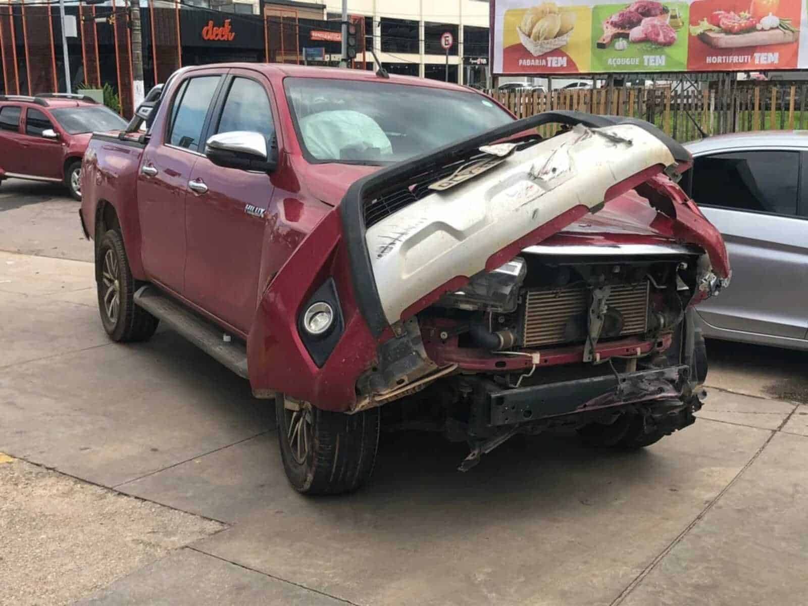 O motorista da caminhonete permaneceu no local e prestou esclarecimento sobre a batida. Ele não se machucou.