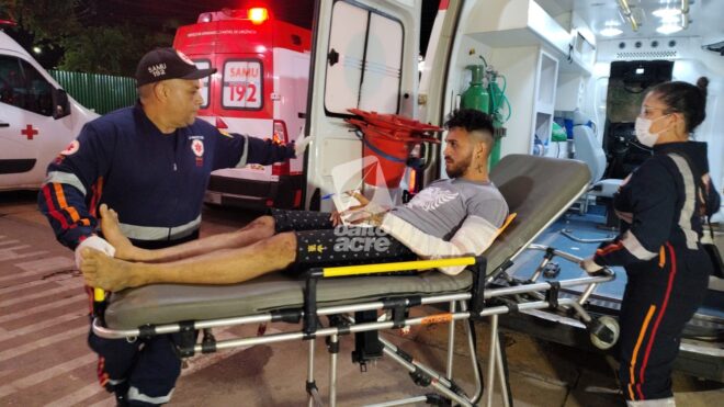 Na unidade hospitalar, o jovem foi entregue ao Setor de Traumatologia, onde os médicos constataram luxação no cotovelo esquerdo, hematomas no tórax posterior e suspeita de fratura em uma das costelas. Apesar das lesões, o estado de saúde da vítima foi considerado estável.