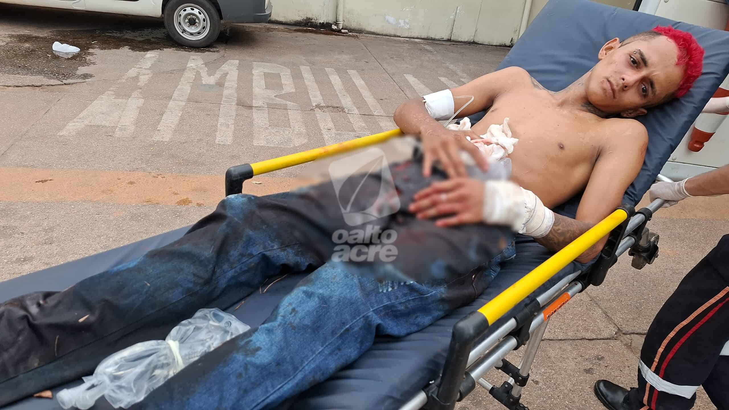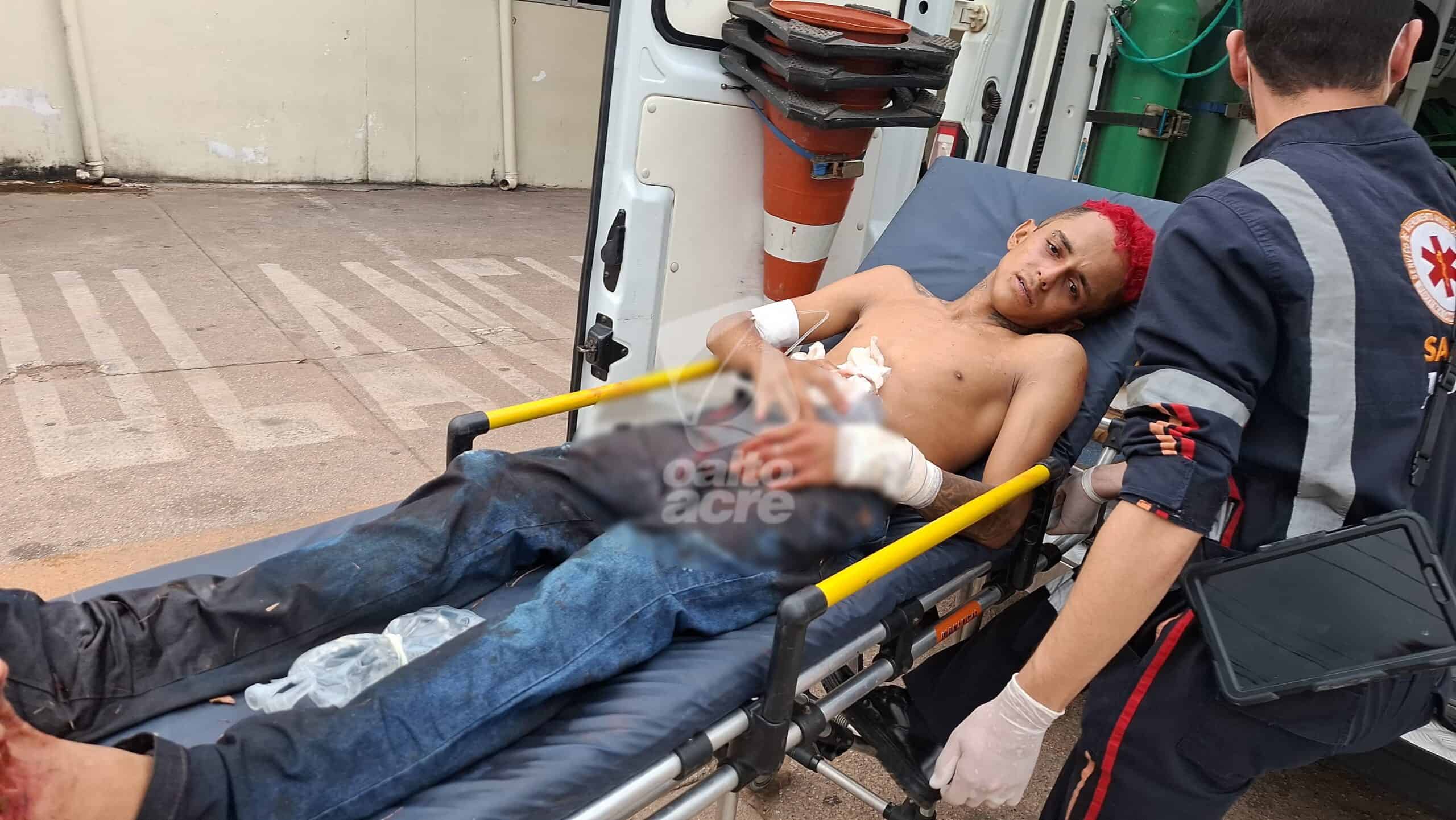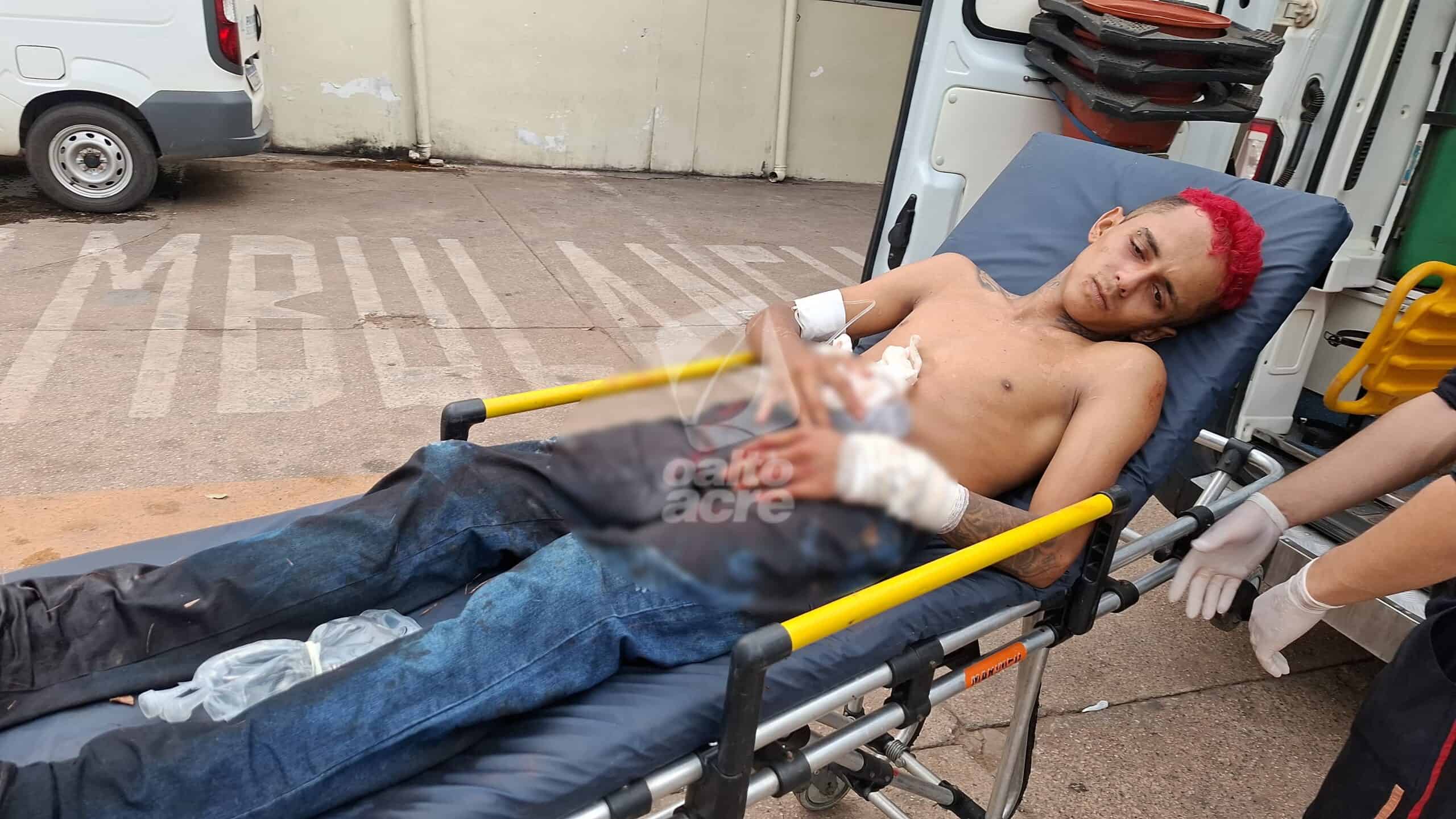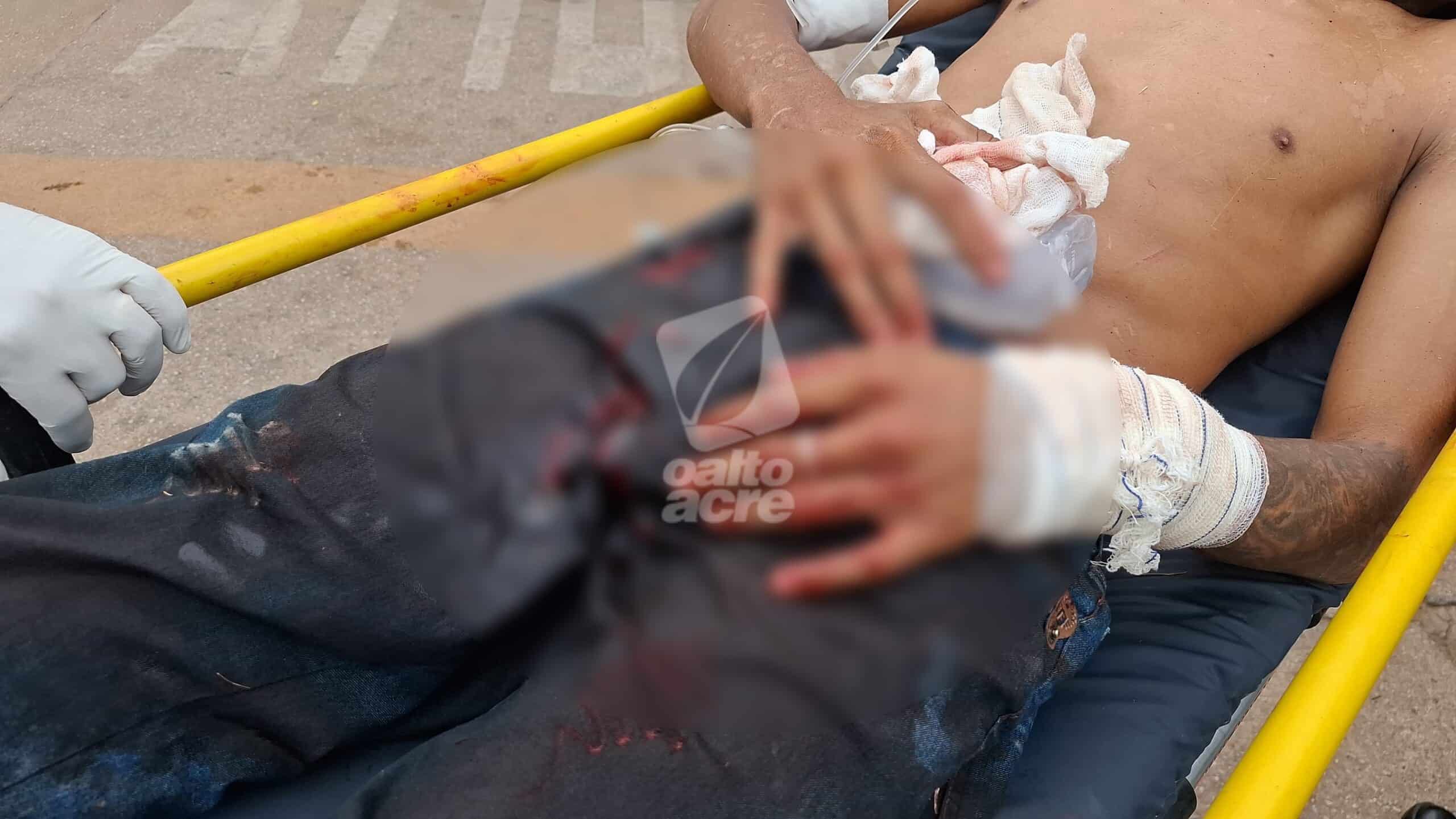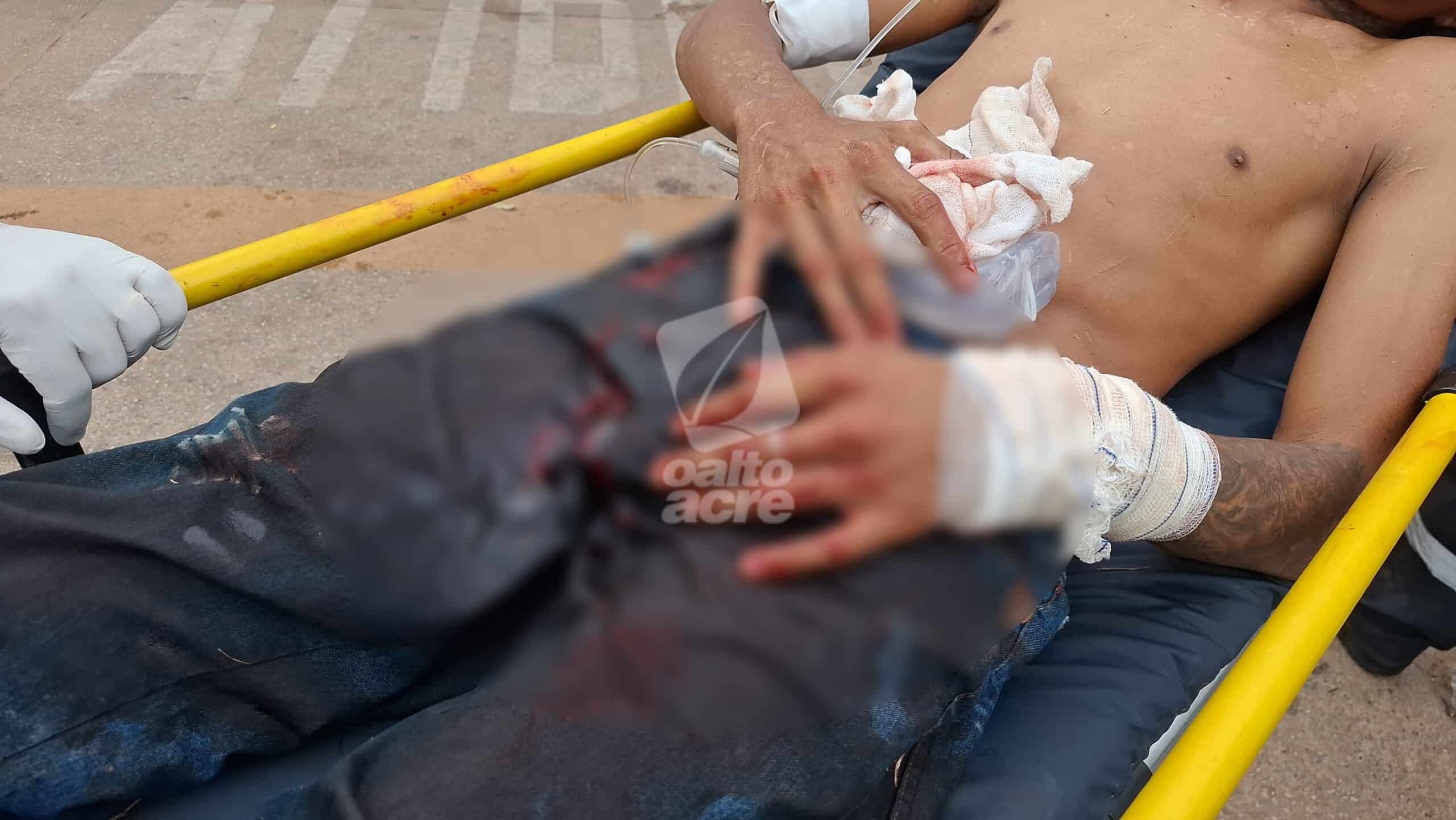 Quando a equipe chegou ao local, encontrou a mulher segurando o companheiro e pedindo socorro. Os socorristas realizaram os primeiros atendimentos, contiveram o sangramento e encaminharam a vítima ao Pronto-Socorro de Rio Branco, onde ele passou por avaliação para verificar possível lesão arterial.