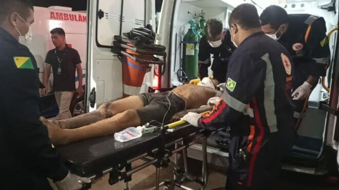 Familiares ajudaram Rodrigo e acionaram uma ambulância e a Polícia Militar. O Serviço de Atendimento Móvel de Urgência (Samu) enviou uma ambulância de suporte avançado. Os socorristas prestaram o atendimento e encaminharam a vítima em estado de saúde gravíssimo ao pronto-socorro de Rio Branco.