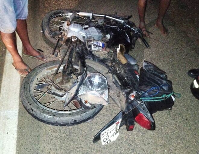 Coincidentemente, um homem que caminhava pela estrada tomando ‘água que passarinho não bebe’, viu o jovem caído e o puxou para fora da estrada. Foi quando de repente, uma caminhonete passou por cima da moto a destruindo completamente e seguiu em frente, talvez apavorado achando que havia atropelado alguém.