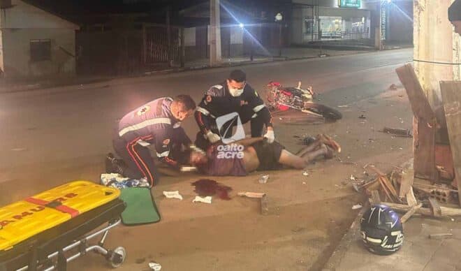 Um grave acidente de moto ocorreu na madrugada desta quinta-feira (20), na Avenida Manoel Marinho Montes, em Brasiléia, quase em frente à agência bancária do Bradesco. O jovem Jeferson Cavalcante Ferreira, de 22 anos, ficou gravemente ferido após bater violentamente contra um poste, ficando desacordado no local. O momento do acidente foi registrado por câmeras de segurança de uma loja comercial.