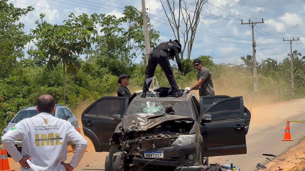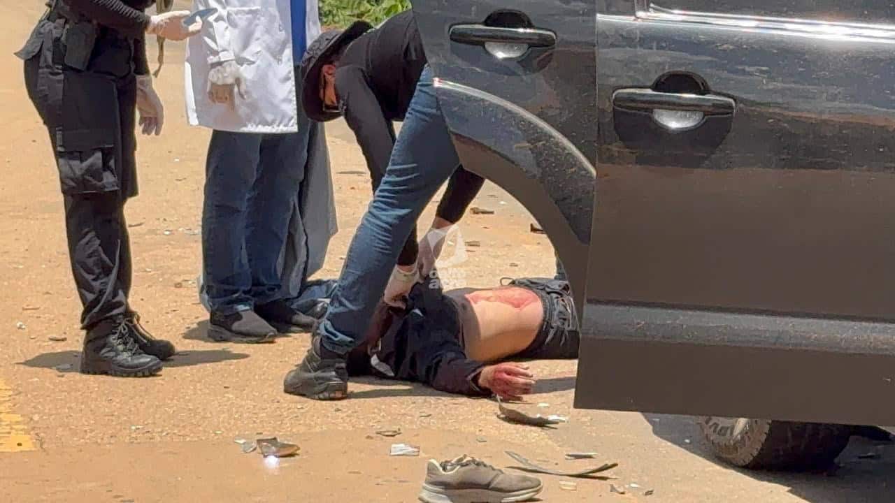 A Polícia Militar foi chamada e isolou a área até a chegada da equipe de perícia. No entanto, conforme informado, a região de fronteira estaria sem peritos criminais de plantão, o que pode atrasar a coleta de informações e a elaboração do boletim de ocorrência.