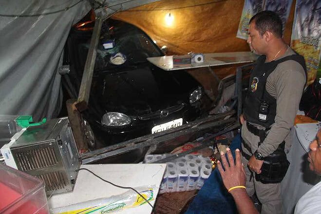 Os danos causados na barraca do senhor Alonso Barros K. De melo (41), foram acertados que seriam sanados pelo proprietário do veículo que chegou momentos depois do incidente e o motorista foi autuado por não portar habilitação e em seguida liberado.