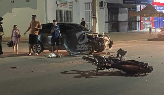 Um grave acidente ocorrido na noite deste domingo (3) deixou o jovem Erielton Campos Bastos, de 23 anos, com ferimentos severos na perna direita, após a moto que pilotava colidir com um carro na Avenida Manoel Marinho Montes, área alta do município de Brasiléia, no interior do Acre.