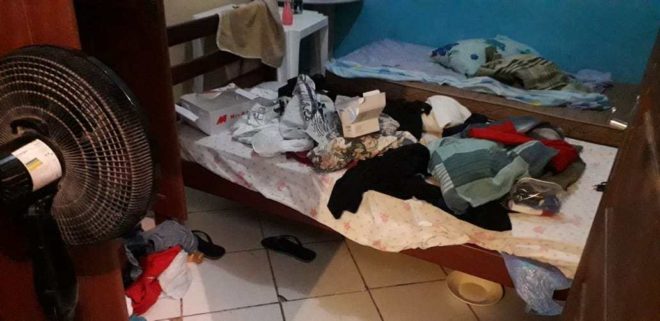 Era por volta de meia-noite quando os três bandidos entraram na casa, fizeram reféns os cinco adolescentes e mais um educador que estava de plantão, e fizeram a “limpa”. Levaram CPU de computadores, ventilador, máquina de solda, dois computadores, aparelho de DVD, roupas, sapatos, caixa de som, roupas de cama, tela de computador na caixa, uma televisão, duas bicicletas, além de outros objetos.