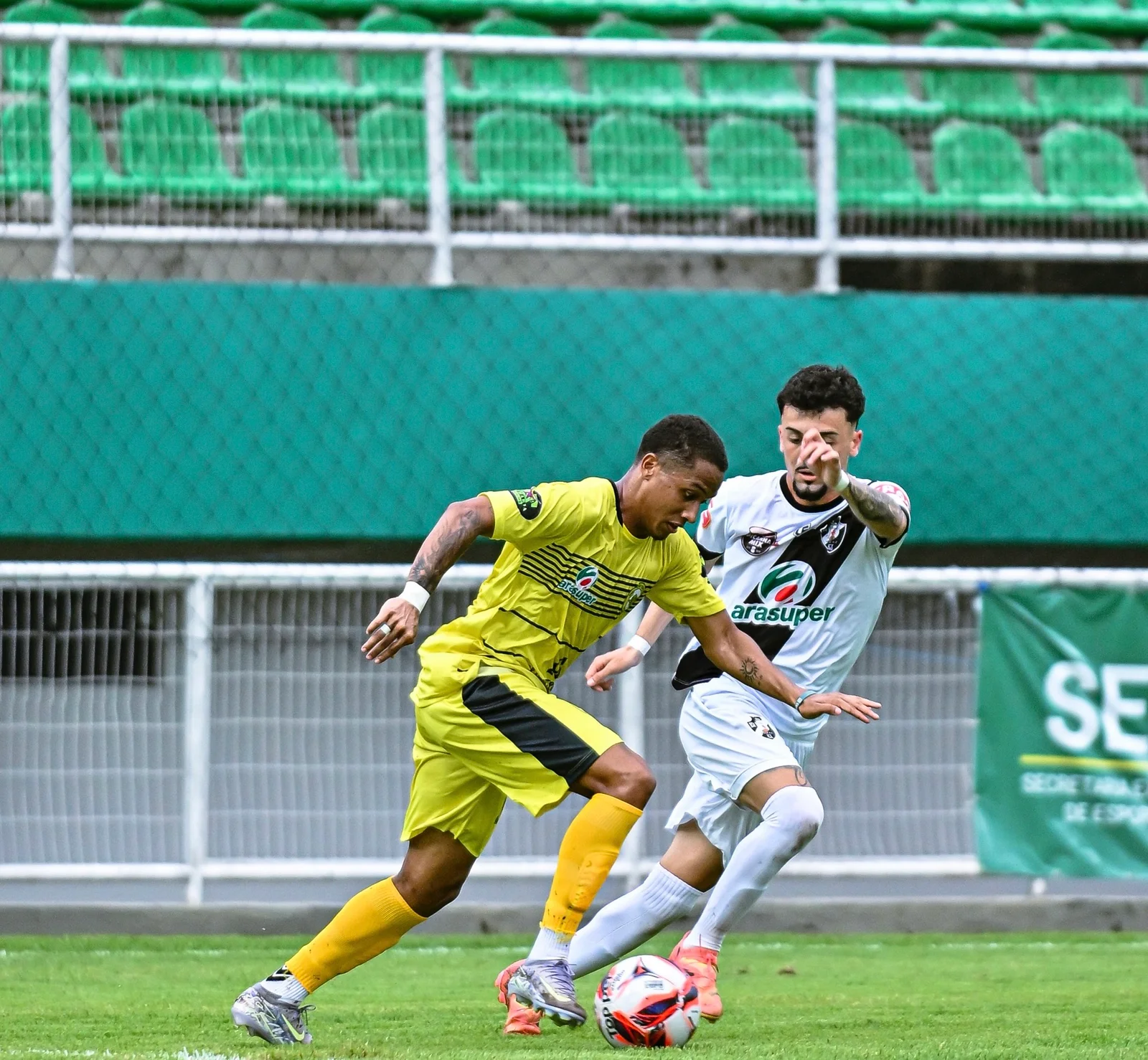 O meia Breno, da Adesg, recebeu cartão vermelho no início da segunda etapa e por isso irá continuar o jogo somente com 10 jogadores.