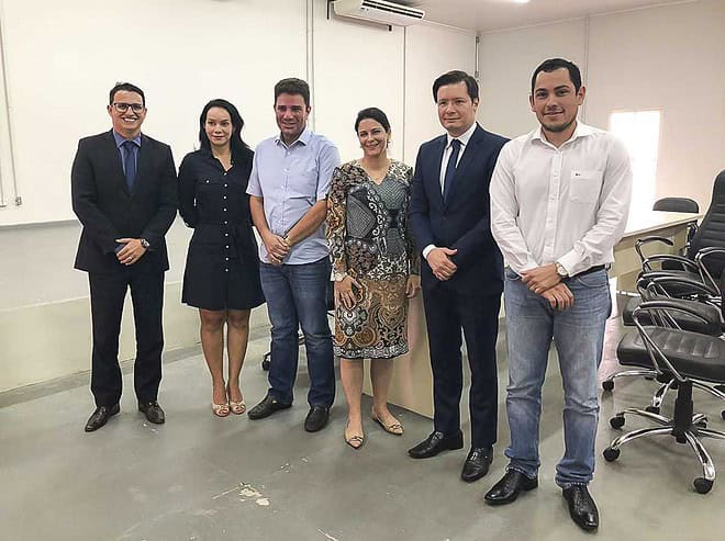 O governador foi recebido pelos juízes de Direito Marlon Machado, Adamarcia Machado, Carolina Bragança, Erick Farhat e Flávio Mundim.