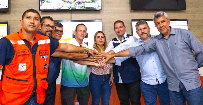 A Prefeita Fernanda Hassem, recebeu, nesta terça-feira, 4, na Sede da Defesa Civil, o Secretário de Estado de Assistência Social e Direitos Humanos, Lauro Veiga, secretário de Estado de Desenvolvimento Urbano, Egleuson Araújo e os prefeitos e vice-prefeitos da Regional do Alto Acre.