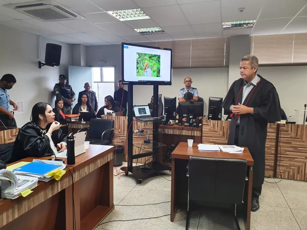 No terceiro dia de julgamento do caso Jonhliane, a banca de advogados de defesa dos acusados Ícaro José da Silva Pinto e Alan Araujo de Lima continua os debates na 2ª Vara do Tribunal do Júri e Auditoria Militar, em Rio Branco. No segundo dia de julgamento, na quarta-feira (18), o juiz Alesson Braz suspendeu a sessão após ouvir os acusados, os advogados de defesa e o Ministério Público.