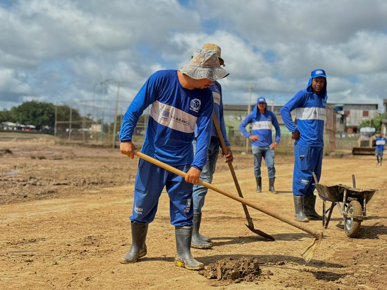 Após a vazante do Rio Acre, a Prefeitura de Rio Branco, por meio da Secretaria Municipal de Cuidados com a Cidade, iniciou, na manhã desta quinta-feira (12), uma força-tarefa de limpeza nos bairros afetados pela enchente. As equipes estão atuando na retirada de lama, areia, lixo e entulhos deixados pela alagação, com o objetivo de restabelecer a segurança, a mobilidade e as condições adequadas de tráfego nas áreas atingidas.
