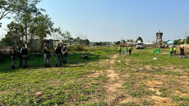 Equipes de Segurança deram apoio na retirada de invasores da área.