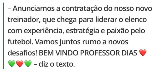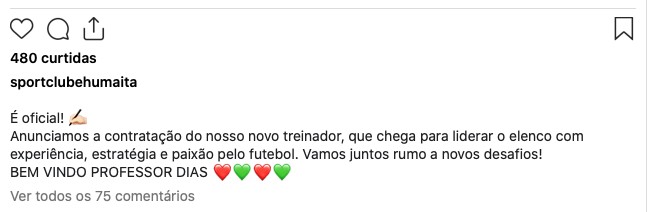 Carlos Alberto Dias é anunciado como treinador do Humaitá para 2026. Foto: Divulgação/SC Humaitá