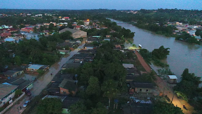Acreditam que suba mais alguns centímetros durante a noite e possa parar de vez durante a madrugada e ao amanhecer desta quarta-feira, dia 8. Na cidade de Assis Brasil, por volta das 20h00, o nível já estava abaixo dos 5 metros.